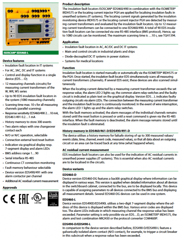 BENDER ISOSCAN ® EDS460/490-EDS461/491 series