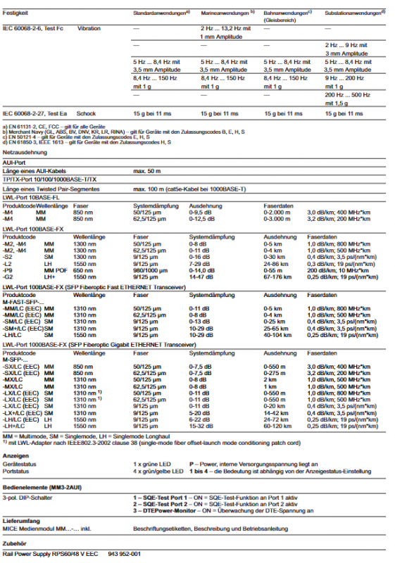 Media module (MS3000) MM3-2AUI, MM3-4FXM4 2 AUI interfaces/4 ST interfaces 10/100 Mbit/s support IEEE 1588 PTP protocol (RT model), some with Confocal Coating