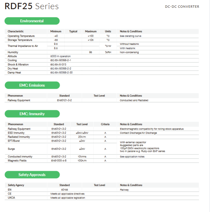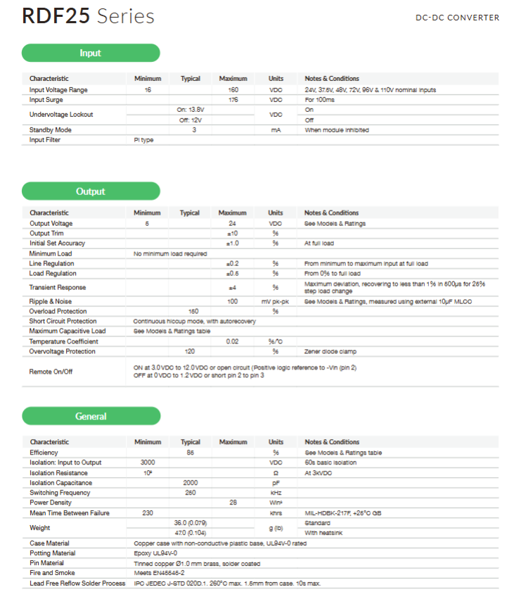 XP POWER RDF25 Series 5W Bottom Cooling DC-DC Converter