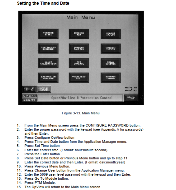 Turbine operation: Adjust the speed, extraction, and other settings on the “Turbine Run” screen, enable/disable frequency control, synchronizers, and other functions