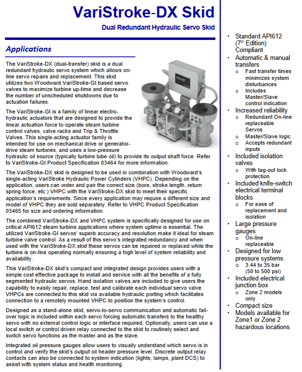 WOODWARD VariStroke DX Skid Dual Redundant Hydraulic Servo System