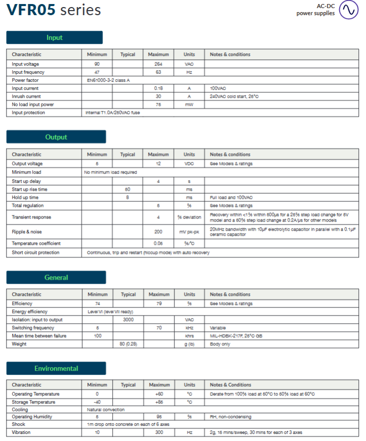 VFR05US050-MB 5.0V 1000mA ± 5% 74% Mini USB B 5W only available for OEM bulk supply