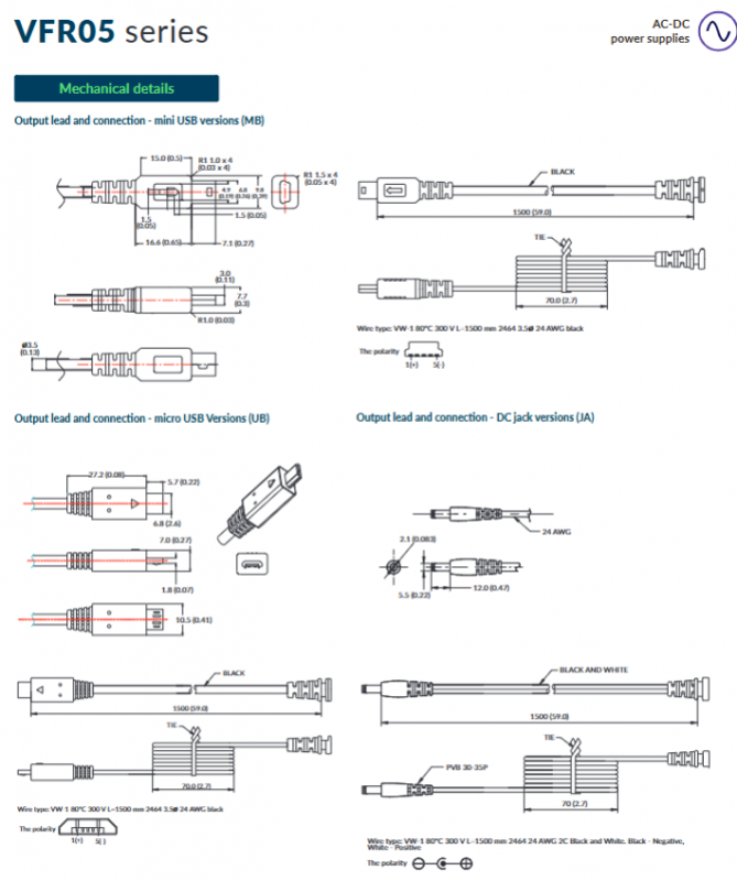 Output cable: Length 1500mm (59.0 inches), specifications VW-1 80 ° C 300V, 24 AWG