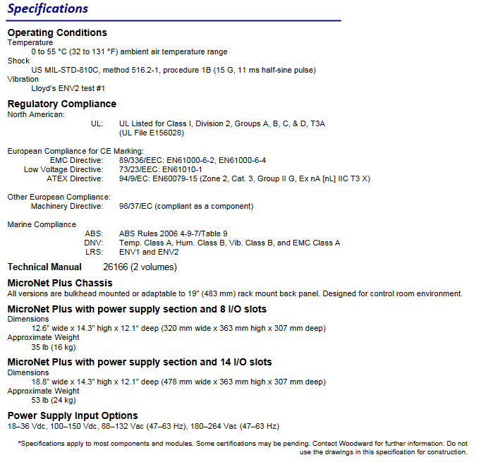 Woodward MicroNet ™ Plus modular digital control system