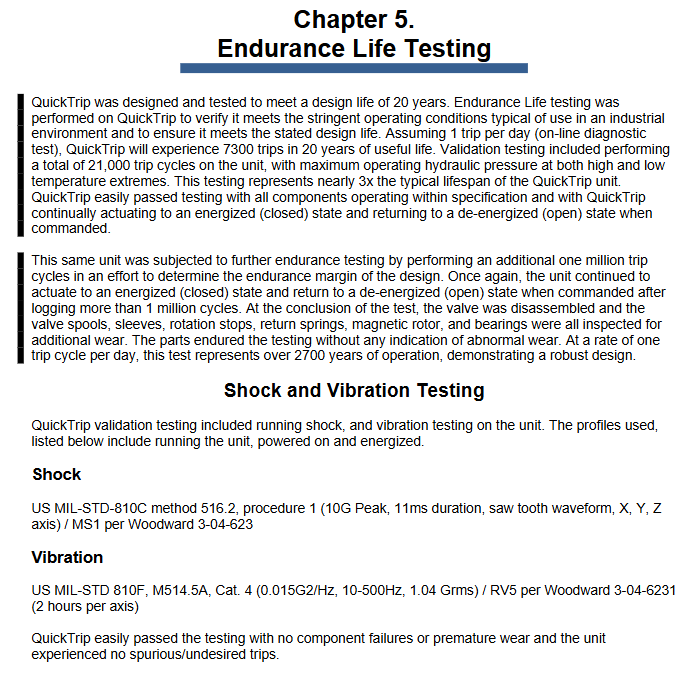 Basic testing: 21000 trip cycles (covering maximum working hydraulic pressure under extreme high and low temperature conditions), equivalent to 3 times the typical service life, and all components meet specifications.
