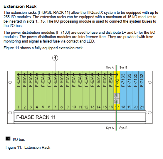 F-IOP 01 I/O processing module connects the system bus and I/O bus, providing I/O watchdog signals