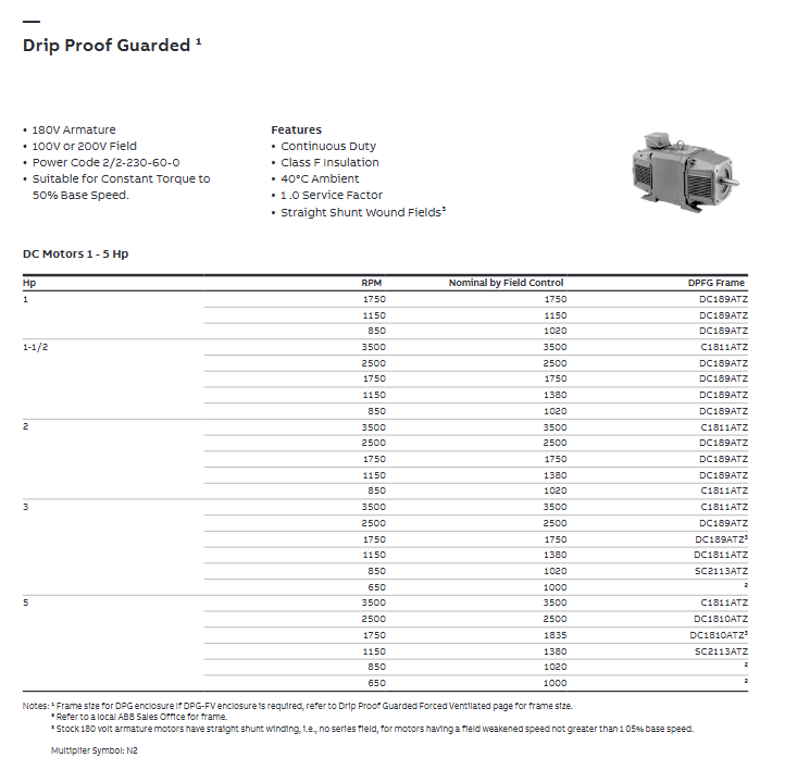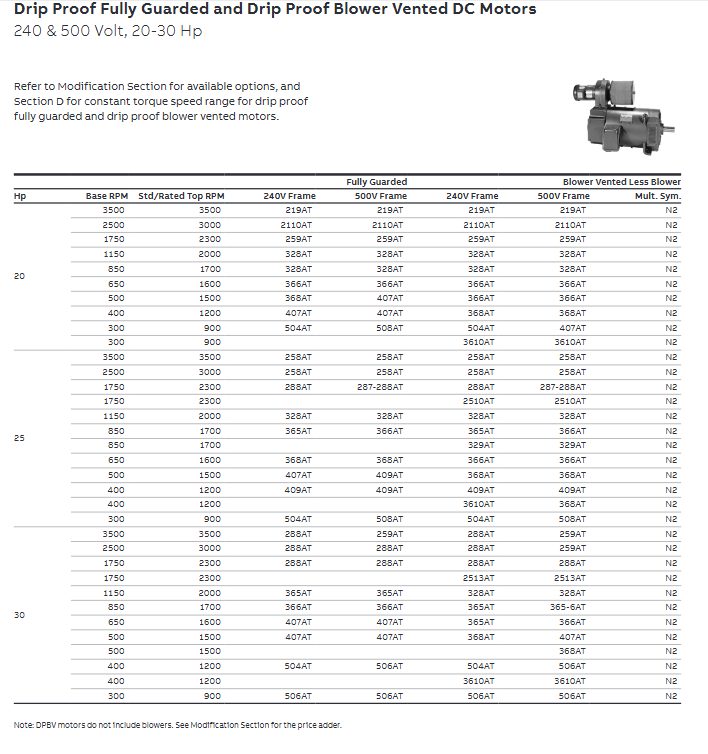 Range driven motor: 240V armature, 240V excitation, compatible with multi motor drive systems, power 3-50Hp