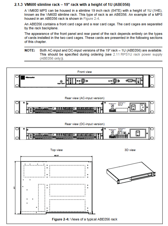 ABE056 19 “× 1U RPS1U (AC/DC input) 3 VME slots (1, 3, x) slim line design, space saving