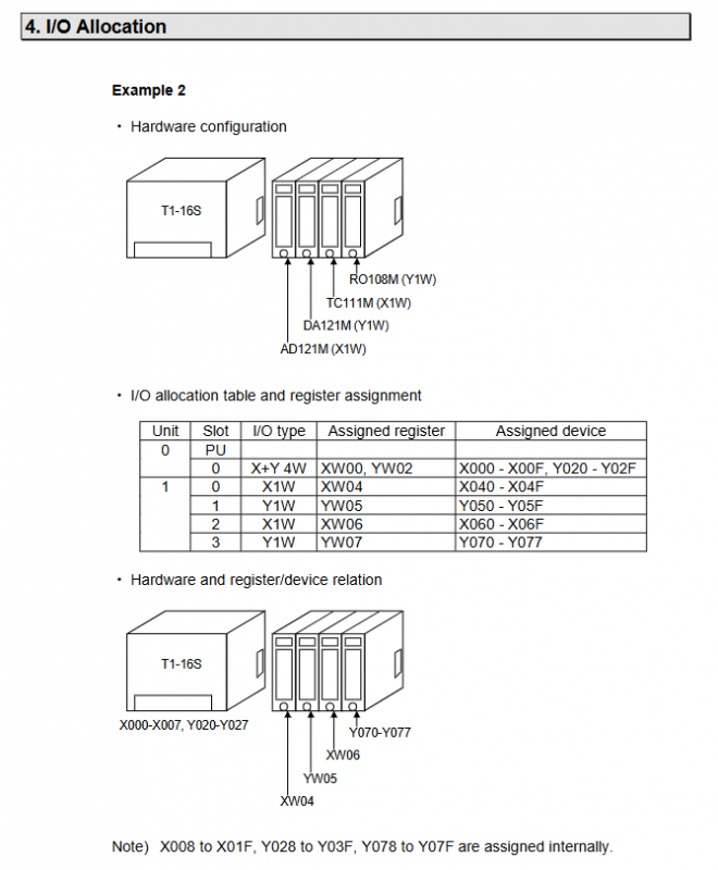 Continuous address allocation for input register (XW) and output register (YW), with the first half of the X+Y type being XW and the second half being YW.