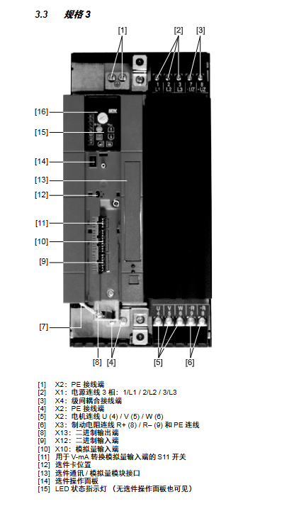 3 230V (3-phase), 400/500V (3-phase) 11kW~30kW 200 × 465 × 251mm 15kg