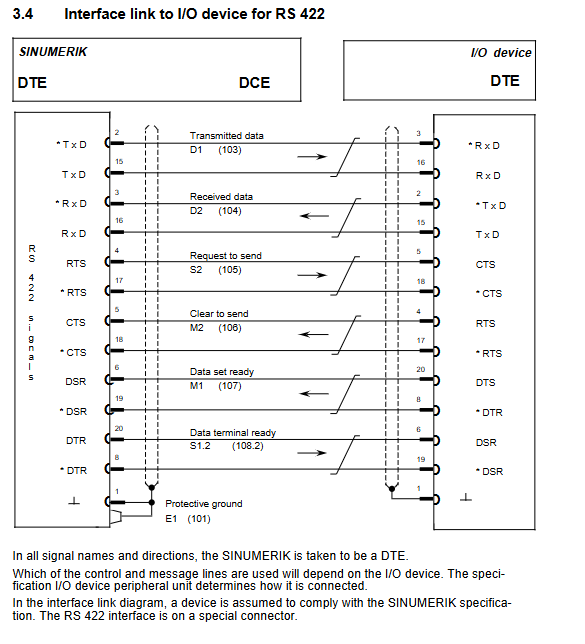 Equipment adaptation: The connection between DTE equipment (SINUMERIK) and DTE equipment requires cross wiring (sending → receiving).