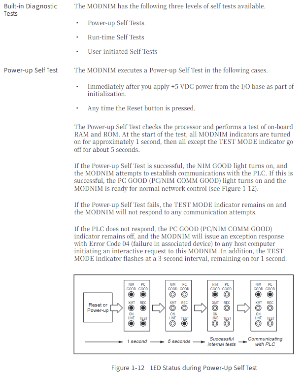 Power on self-test: After the module is powered on or reset, it checks the RAM/ROM/processor. If it passes, the NIM GOOD light will turn on