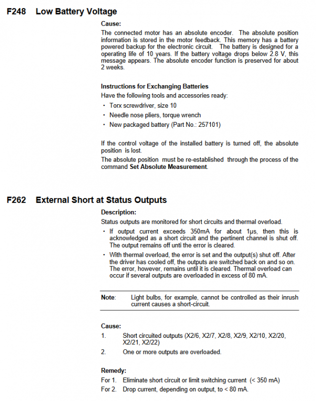 Structure composition: Each diagnostic message contains a “diagnostic number+diagnostic text”, for example, “F2/28 excessive output error”. The number is displayed alternately on the H1 screen, and the complete text can be viewed for parameter S-0-0095.