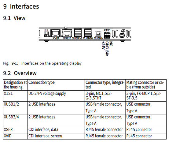 Control cabinet PC connection: Connected through CDI interface (XSER purple/RJ45 data interface, XVID black/RJ45 image interface), requires the use of 2 dedicated CDI cables, with a maximum distance of VDP 16.3 (80 meters), VDP 40.3 (70 meters), VDP 60.3 (60 meters), exceeding which Y-Repeater (VAC01.1S-YD1-NNN, part number R911171187) is required.