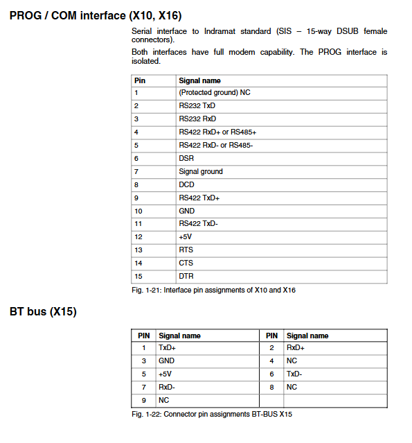 SERCOS type (DKC02.3): Fiber optic interface, switchable transmission power, maximum transmission 500m (glass fiber).