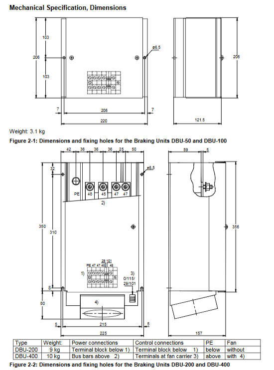 | DBU-100 | 100A | 18kW | 75kW | 7.2Ω | 3.1kg |