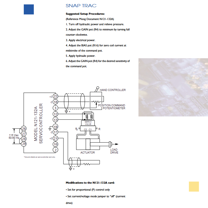 Open loop position control servo amplifier, actuator, command potentiometer simple positioning, manual monitoring feedback zero bias → set gain → hydraulic testing