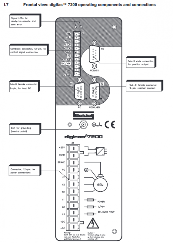Motor interface (U2/V2/W2): including brake wiring (BRAKE), brake voltage 24VDC ± 10%