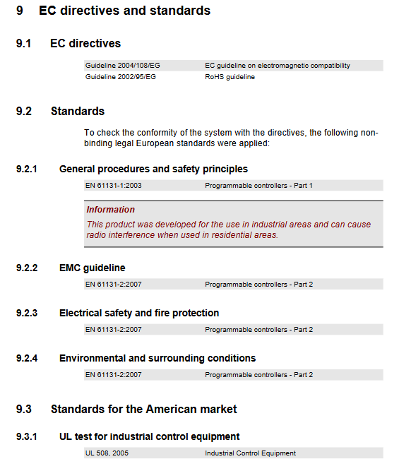 Certification compliance: Complies with the EC Electromagnetic Compatibility Directive (2004/108/EG), RoHS Directive (2002/95/EG), meets EN 61131-2:2007, UL 508 industrial control equipment standards;