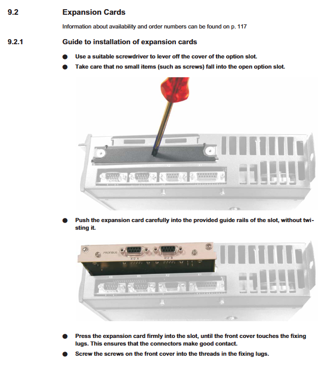 Expansion card optional expansion modules OPT-EI (I/O-14/08), OPT-PB (PROFIBUS), OPT-EC (EtherCAT)