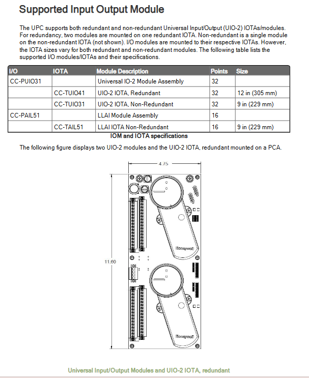 Module installation: redundant IOTA (CC-TUIO41, 12 inches), non redundant IOTA (CC-TUIO31/CC-TAIL51, 9 inches), supporting hot swappable maintenance