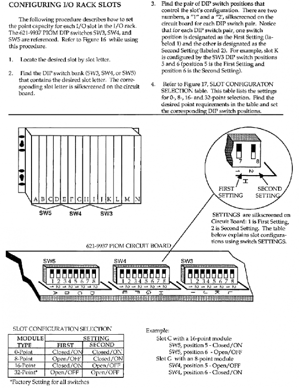 Parallel I/O module (PIOM) 621-9937 I/O rack controls 2 50 pin interfaces, with DIP switches configured for address configuration