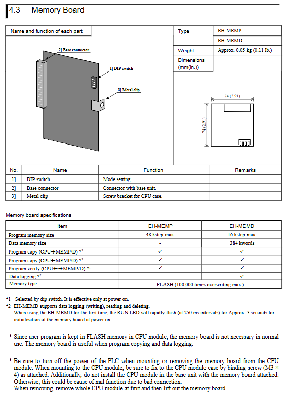 |EH-CPU448 (A) | 1024 | 48.5k steps | 0.1 µ s/instruction | 1 | Floating point operation, memory board support|