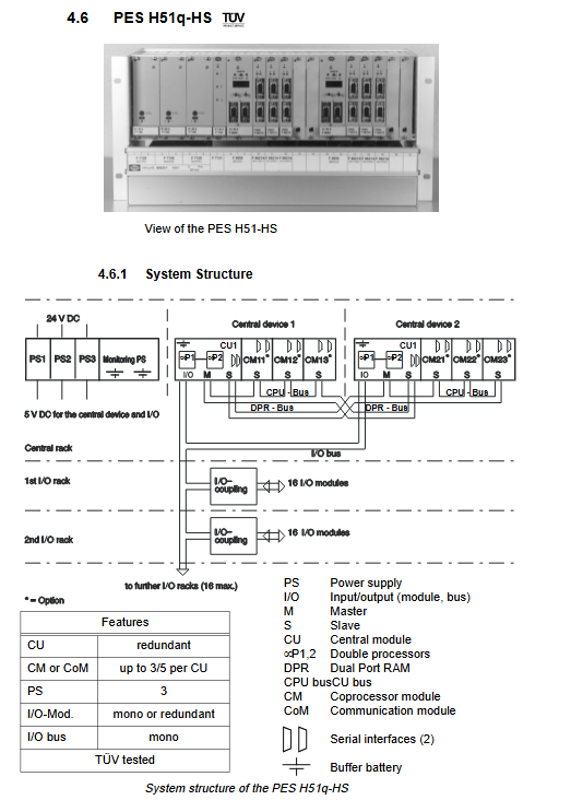 -HS redundant T Ü V certified (AK 1-6) 2 dual processor central modules, single I/O bus high+safety