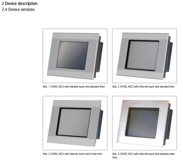 |Typical Model Example | Resistive 10.4 “Standard Front Panel: XV-430-10TVB-1-1x/MC2-430-10TVB-1-1x|