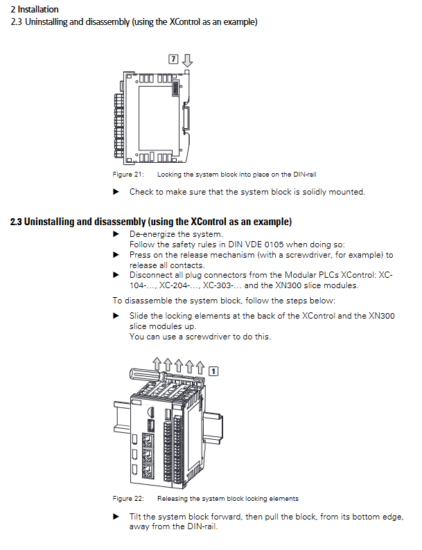 Installation method: DIN rail (IEC EN 60715, 35mm), XC-303-… only supports horizontal installation, XC-104/204 supports horizontal/vertical installation