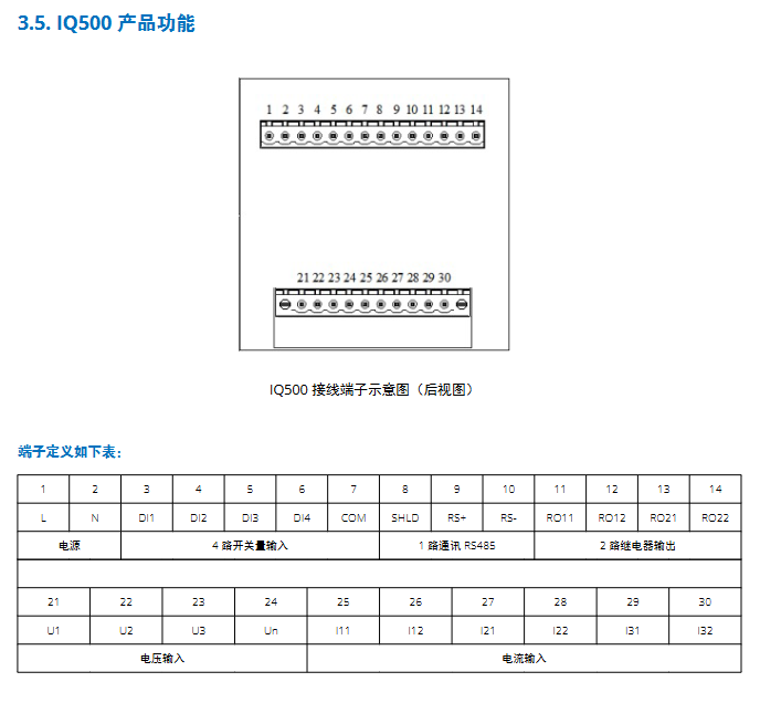 Product positioning: The IQ series is Eaton’s digital energy meter, and the IQ500 is a multifunctional meter designed specifically for medium and low voltage systems. It integrates data acquisition, processing, and statistics, and is the core terminal for intelligent power monitoring and energy management;