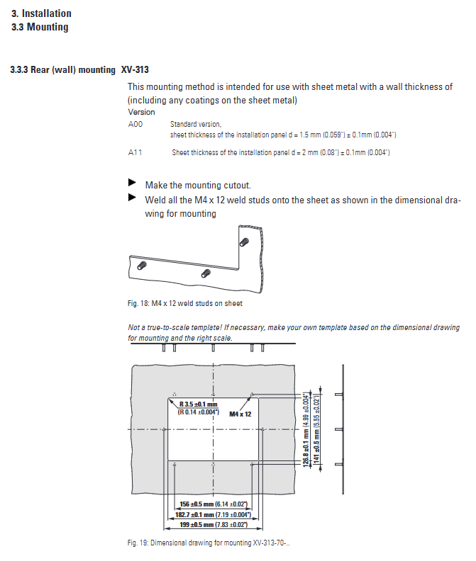 Front installation (XV-303): panel thickness 2-5mm, flatness ≤ 0.5mm, roughness Rz ≤ 120 μ m;