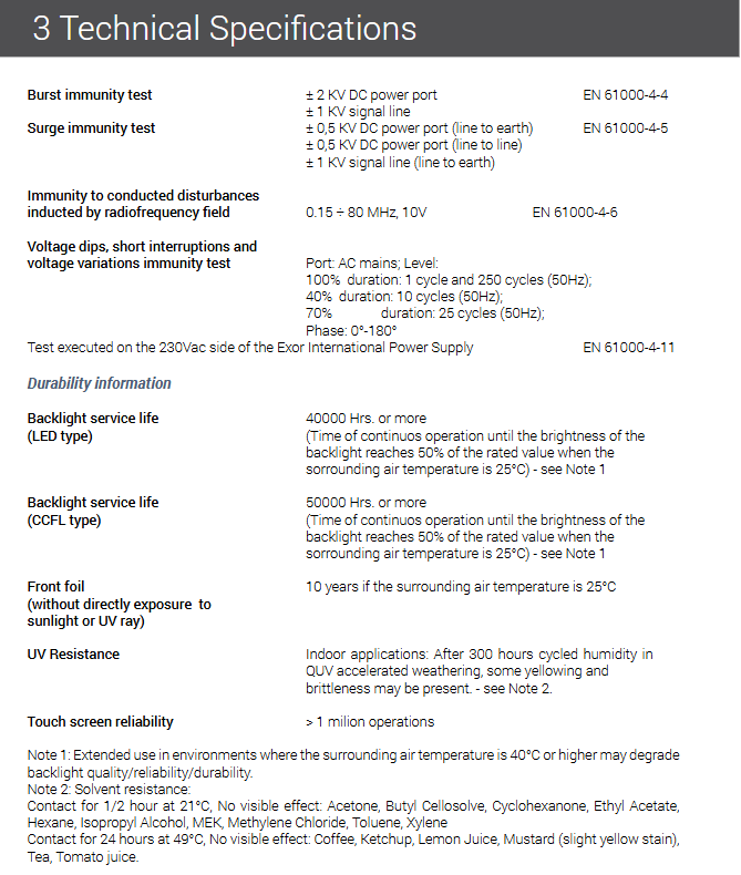 Touch technology resistive, with a lifespan of over 1 million operations