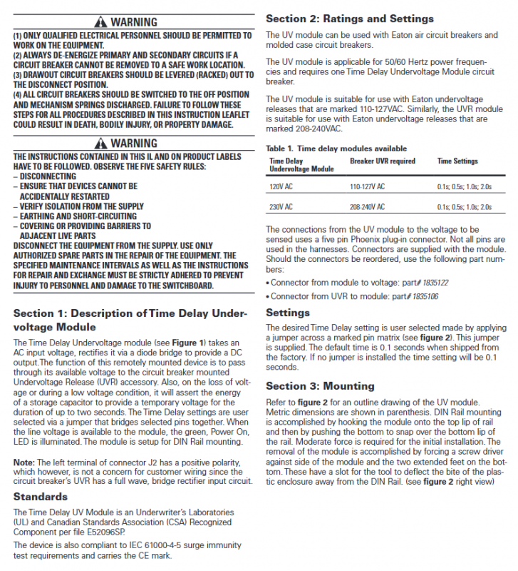 EATON Time delay undervoltage module
