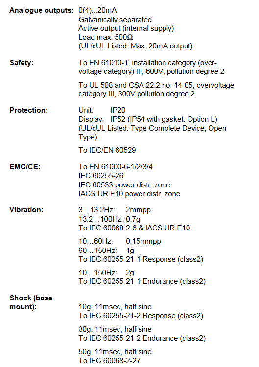 Measurement range voltage (phase to phase) 100-690V AC (± 20%), UL/cUL certified as 110-480V AC