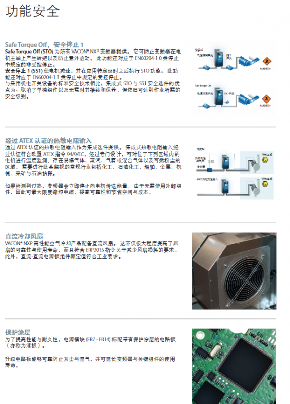 Safety option: ATEX certified thermistor input (monitoring motor temperature in explosive environments)