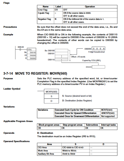Data movement: The MOV instruction family supports the transfer of words, bits, and digits. XCHG (073) is used for data exchange, XFER (070) is used for block transfer, and BSET (071) is used for memory filling.