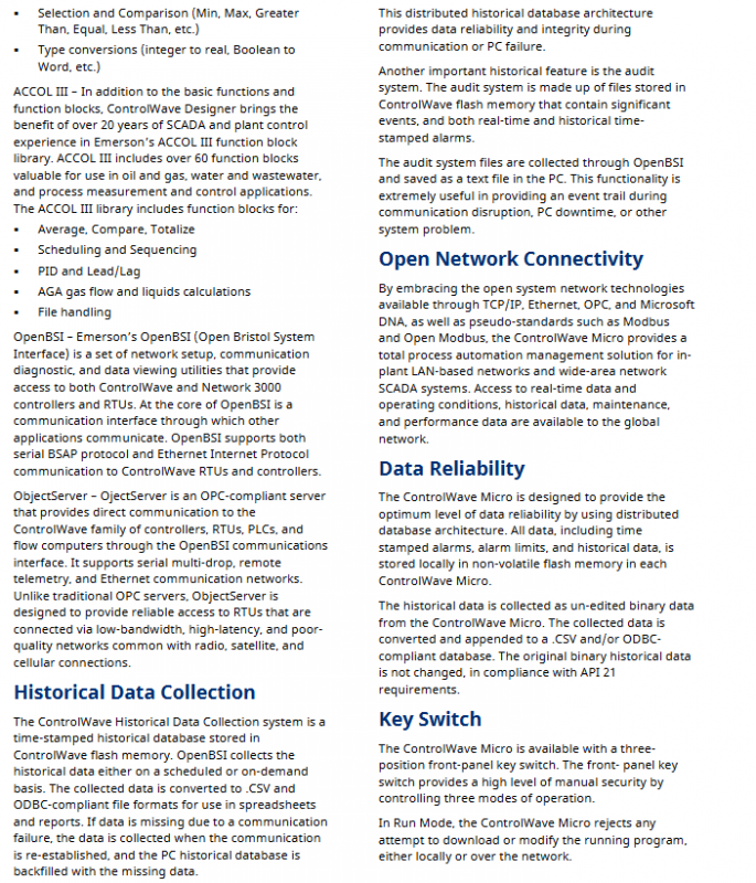 Object Server OPC compatible server adapts to low bandwidth/high latency networks (wireless, satellite, cellular) and directly connects to ControlWave series devices