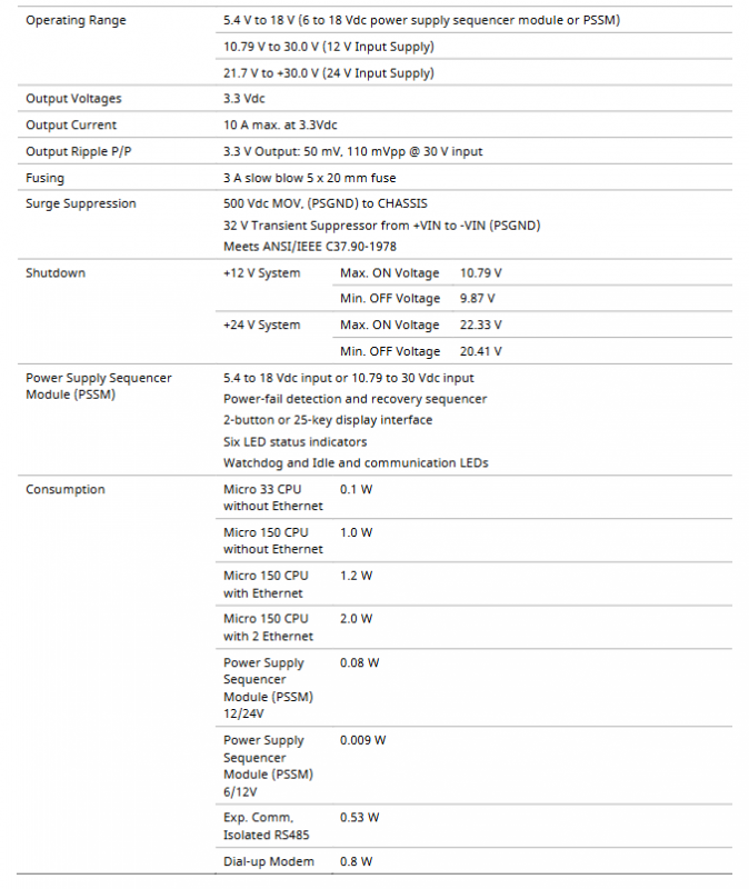 Power consumption: 0.08 W for 12/24V PSSM, 0.009-0.53 W for 6/12V PSSM
