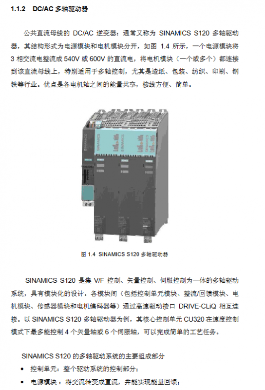 DC/AC multi axis driver: The power supply and motor module are separated and connected through the DRIVE CLiQ high-speed interface. The core is CU320, which also includes power module, motor module, sensor module, etc. It is suitable for multi axis industries (paper/packaging, etc.) and can share energy between axes.