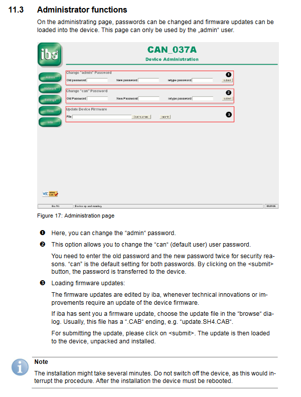 Driver: USB configuration requires the installation of iba AG USB Remote NDK Network Device driver (provided with the device CD-ROM).