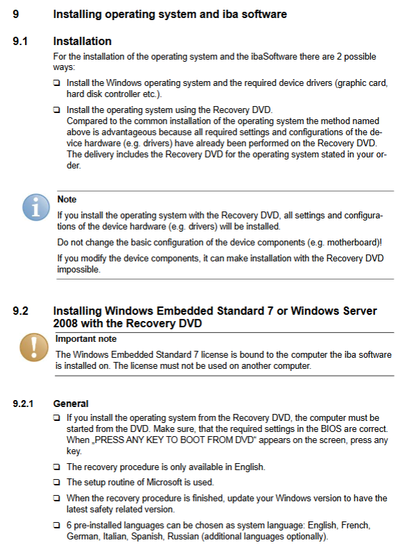 Memory ibaDeskline SAS: 8GB DDR3-RAM; ibaDeskline SAS PCI:8GB DDR2-RAM