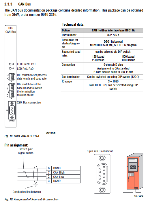 CAN Bus – – 125/250/500/1000 kbaud DFC11A(822725X)