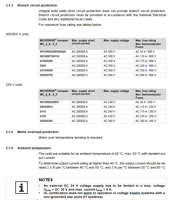 SEW EURODRIVE’s MOVIDRIVE ® Series frequency converter UL certification related technical data sheet