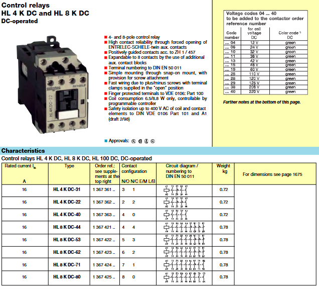 Control relay HL 4K/8K AC/DC rated thermal current 16A 4/8 poles, in compliance with ZH 1/457 standard 3NO1NC~8NO control circuit switching and signal amplification