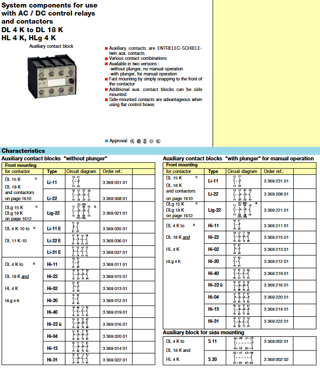 Type: 2-pole/4-pole, front mounted (Hi/Li series)/side mounted (S 11/S 20 series), with/without manual operation plunger.