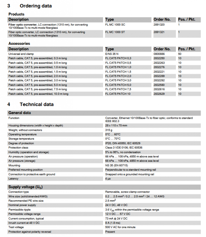Phoenix FL MC 1000 SC (ST) Fiber Optic Converter