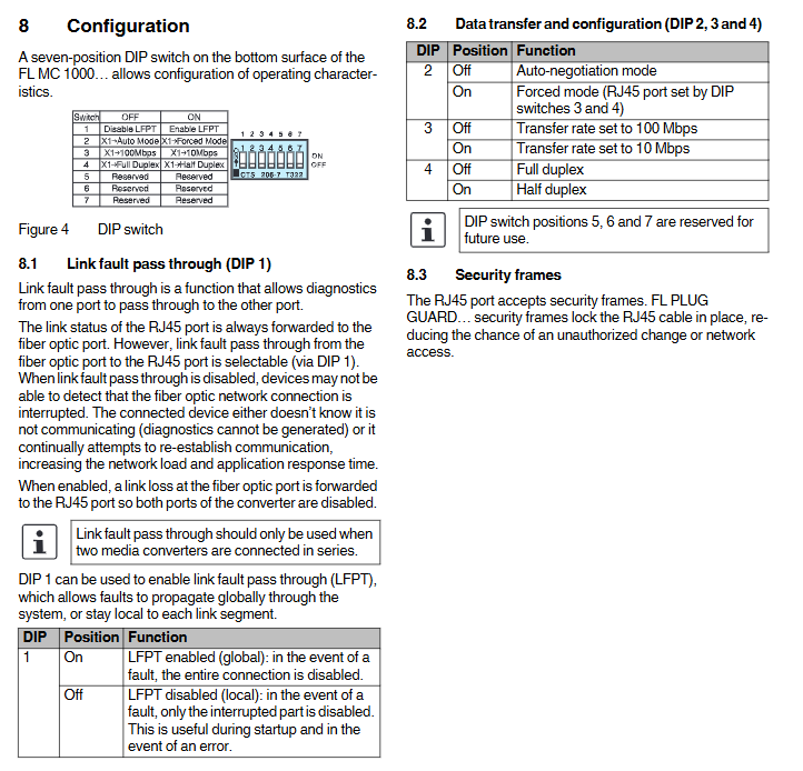 1 (LFPT) Link fault penetration open: enabled (global fault, fully connected disabled); Off: disabled (partial fault, only partially disabled interruption)