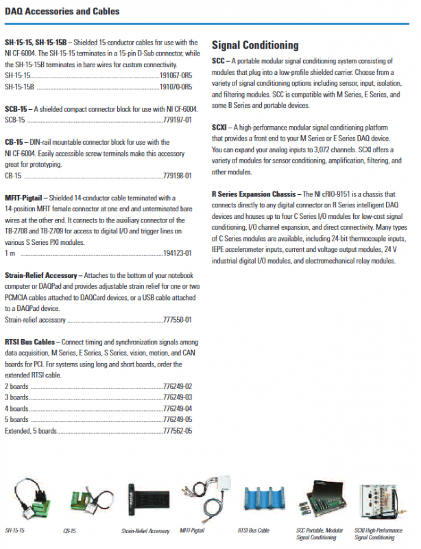 The specification and selection manual for NI SHC68-68-EPM high-performance shielded cable introduces that the 1-meter-long 68 pin VHDCI to 68 pin D-type cable adopts independent shielded twisted pair, segmented shielding, copper braided tin plated shielding layer and other noise reduction designs, and is compatible with the M series DAQCard、 Some S-series DAQ devices can be connected to signal conditioning accessories such as SCXI, SCC, SCB-68, BNC terminals, etc; At the same time, a complete selection table for NI’s full range of 68 pin/100 pin/37 pin DAQ cables, junction boxes, and terminal boards will be compiled, covering scenarios such as analog, digital, counter, and analog output, and providing NI technical support and service information.