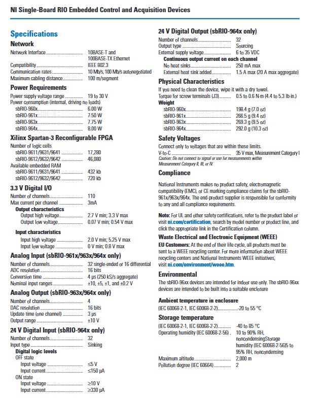 NI Single-Board RIO Embedded Control and Acquisition Devices